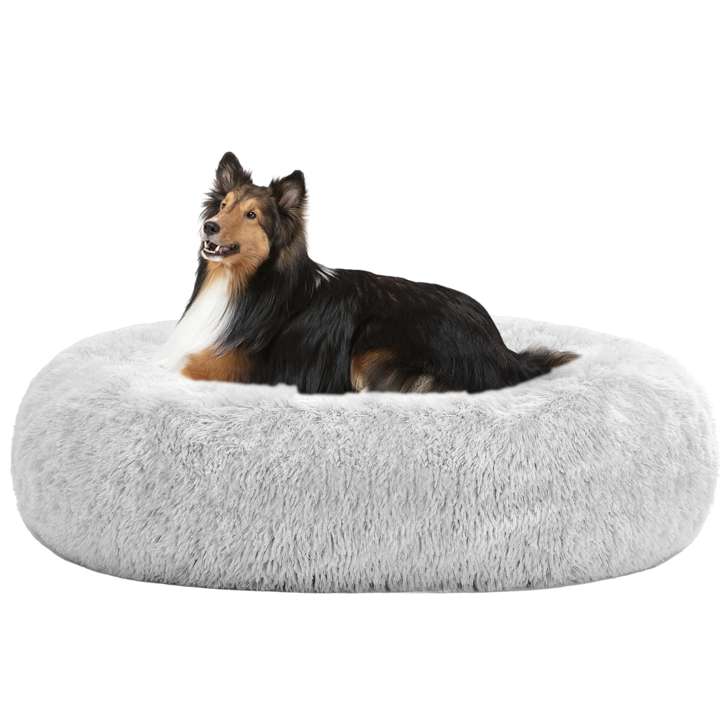 HMTOPE Orthopädisches Hundebett rund Hundekissen Hundesofa Katzenbett Donut Kuscheliges Hundekorb Waschbar, 80 cm Ø, Hellgrau