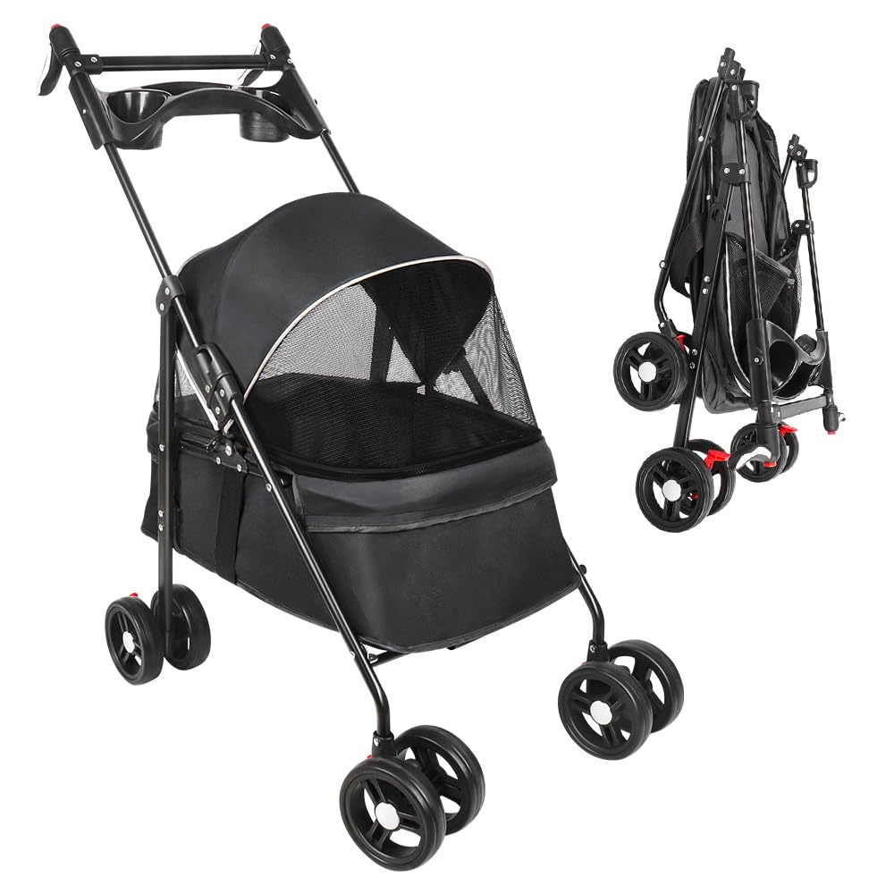Homewell 2in1 Hundewagen, Hundebuggy mit 2 Getränkehaltern, Hundebox Transporttasche Faltbar klappbar, mit Feststellbremse, Jogger Buggy für Haustiere, 50 * 70 * 99cm (Schwarz)